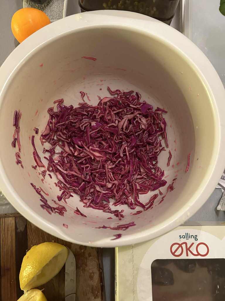 In Denmark, it’s traditional to serve cooked red cabbage as part of the Christmas dinner — rich, sweet, and warm. It’s delicious, but also quite heavy alongside all the other festive dishes. This salad is a fresh and vibrant alternative that brings balance to the table. It keeps the beautiful colour and the classic seasonal flavours, but feels much lighter… and your stomach will thank you the next day! 😉