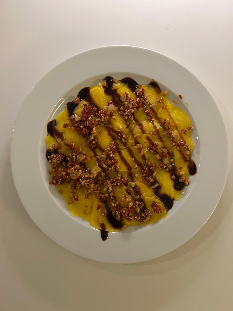 I tried making this dish several times without success — simply because my beet slices weren’t thin enough. If the slices are too thick, the dish won’t work. Patience really matters here.